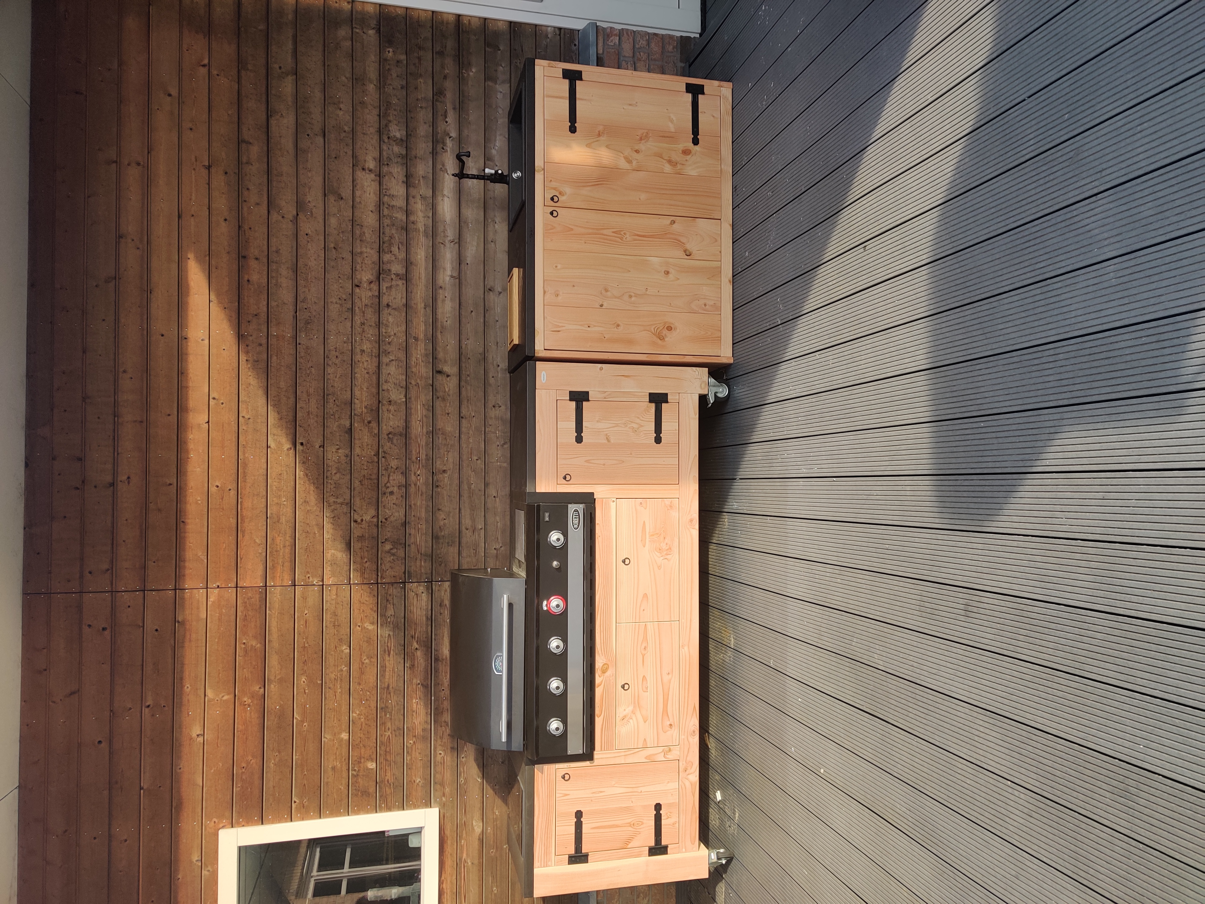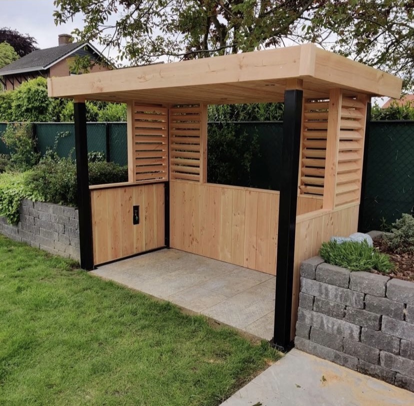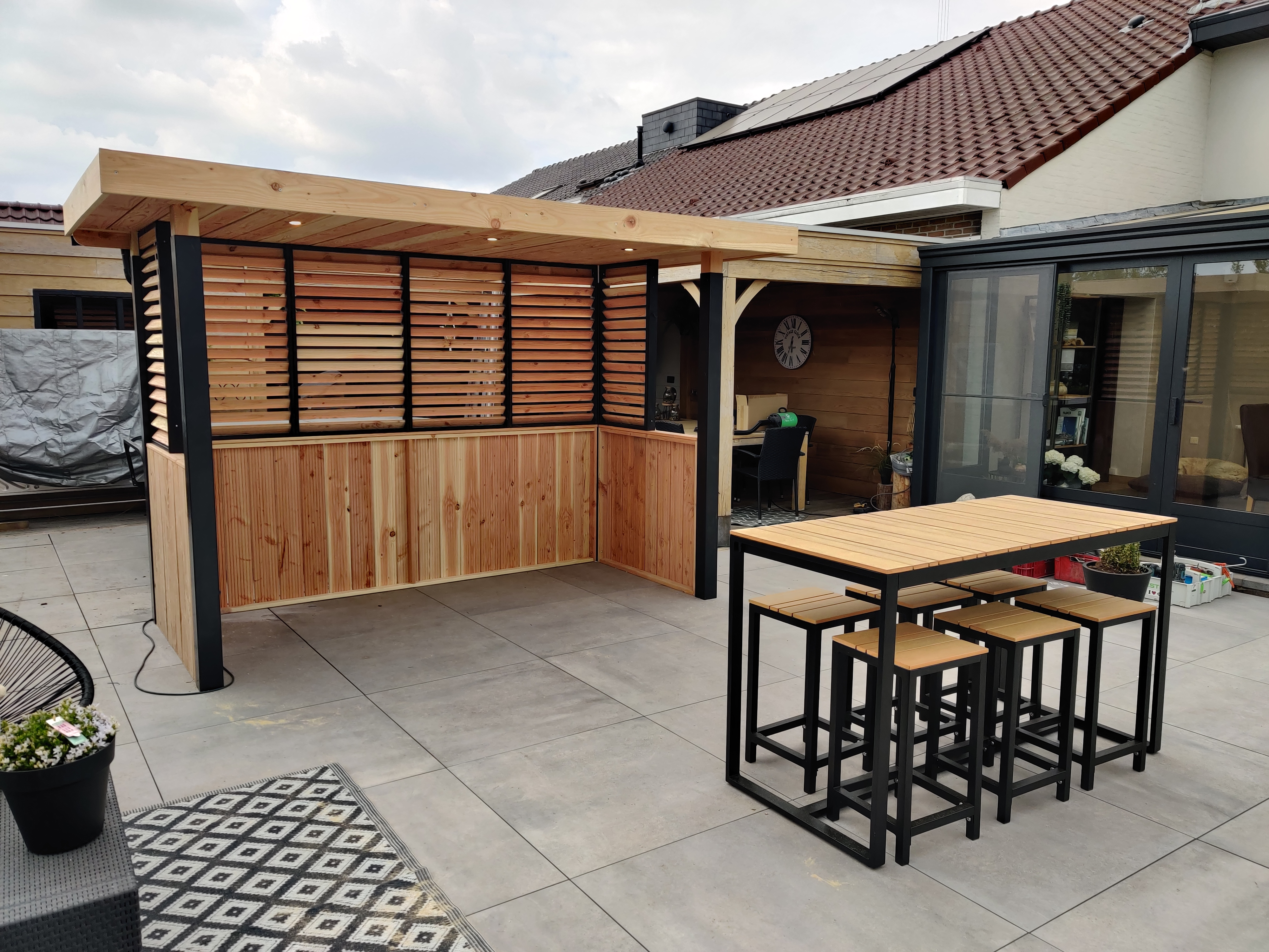 De overkapping van douglashout is echt perfect , lekker ruim en voldoende opbergruimte door de flexfence kan ik de lichtinval regelen,