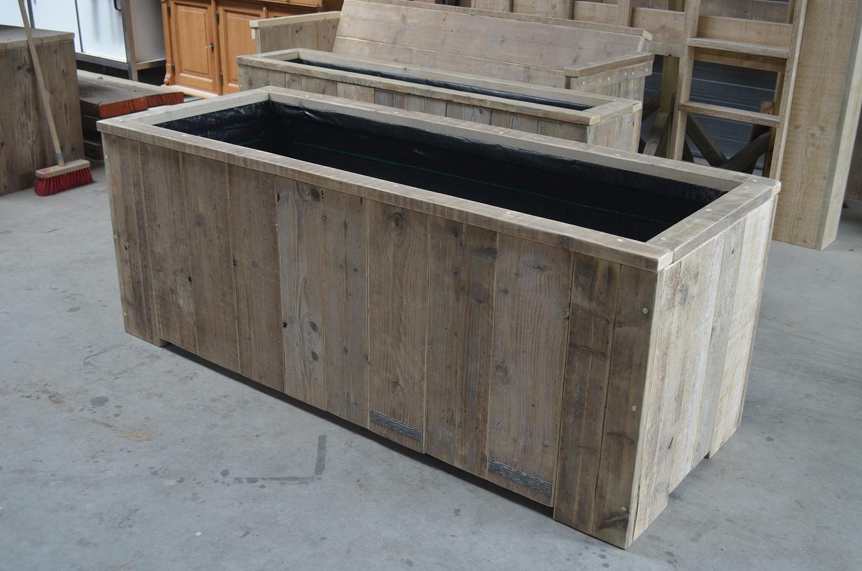 Bloembak GIGANT een hele grote bloembak van gebruikt steigerhout binnenkant voorzien van anti worteldoek
