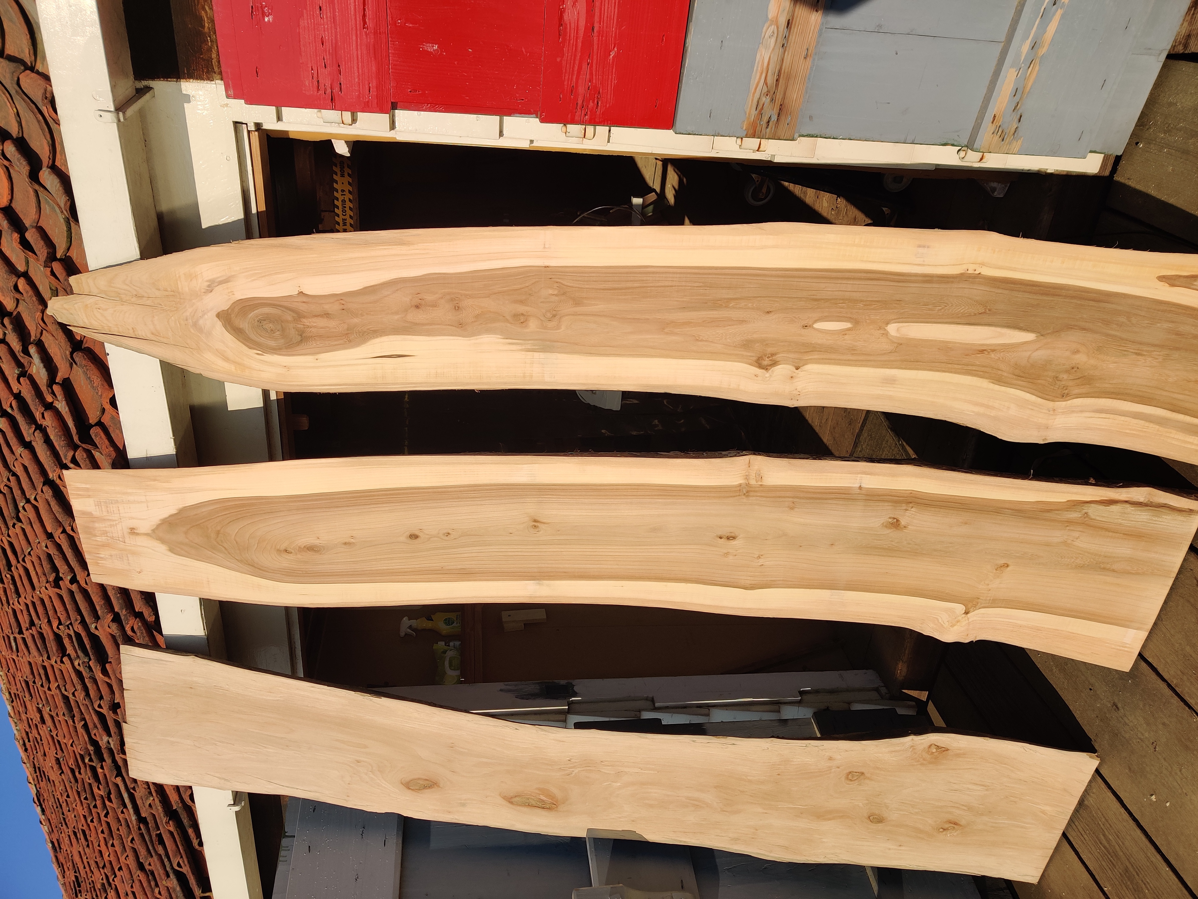 Diverse maten iepenhout in verschillende diktes.