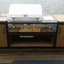 De Douglas houten tafel voor elke barbecue wordt op bestelling gemaakt met een levertijd van 2 tot 4 weken. Let op, de barbecue en de steen waarop de bbq staat, worden niet meegeleverd.