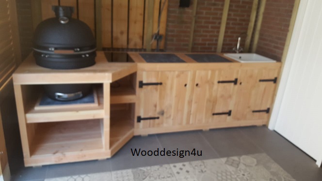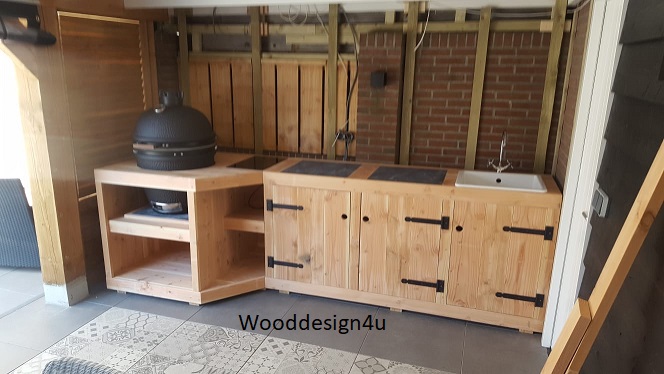 Hoekbuitenkeuken van douglas hout,complete buitenkeuken.