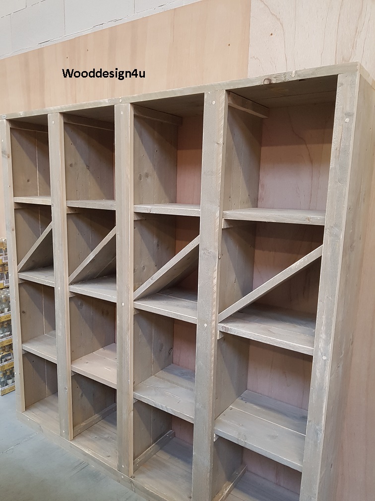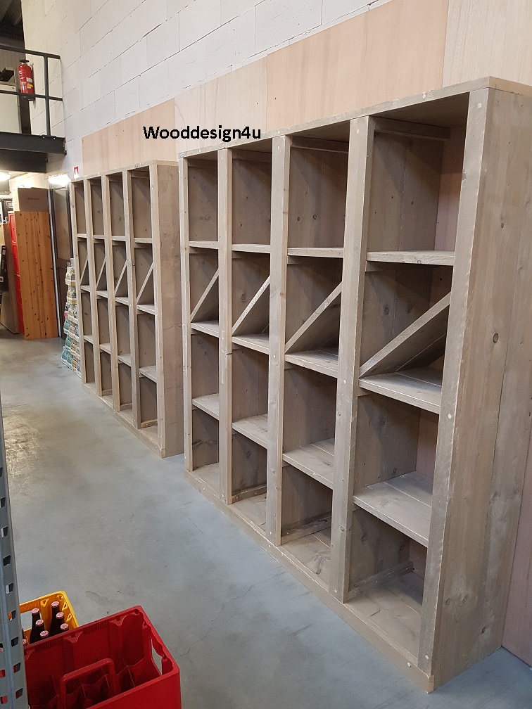 Grote steigerhouten wijnkast diverse indelingen mogelijk afm. 200 x 200 x 40 cm