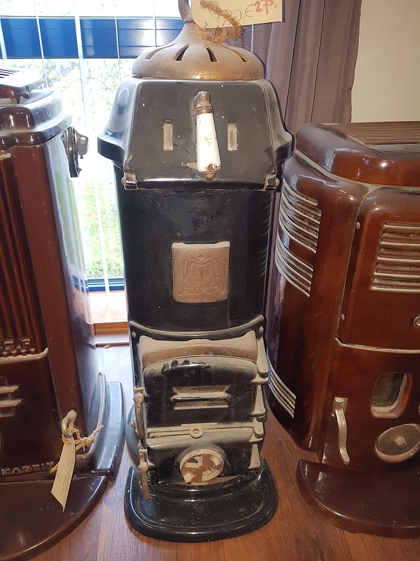 Oude kachel "Vuurduivel" zwart ruitjes heel leuk kacheltje , kan zo aan!