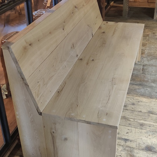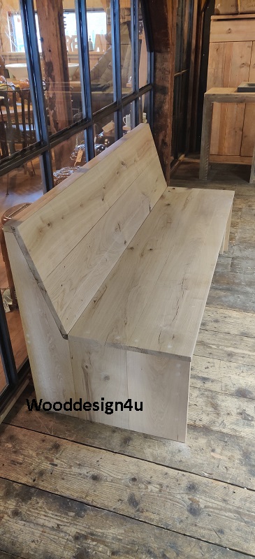Stijlvolle Spaanse bank van rustiek eikenhout.