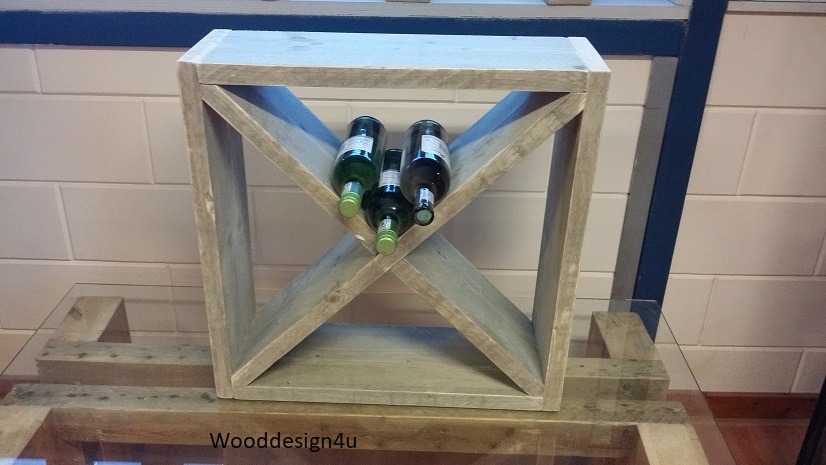 Leuke steigerhouten wijn opslag/rek , geschikt voor meerder flessen.